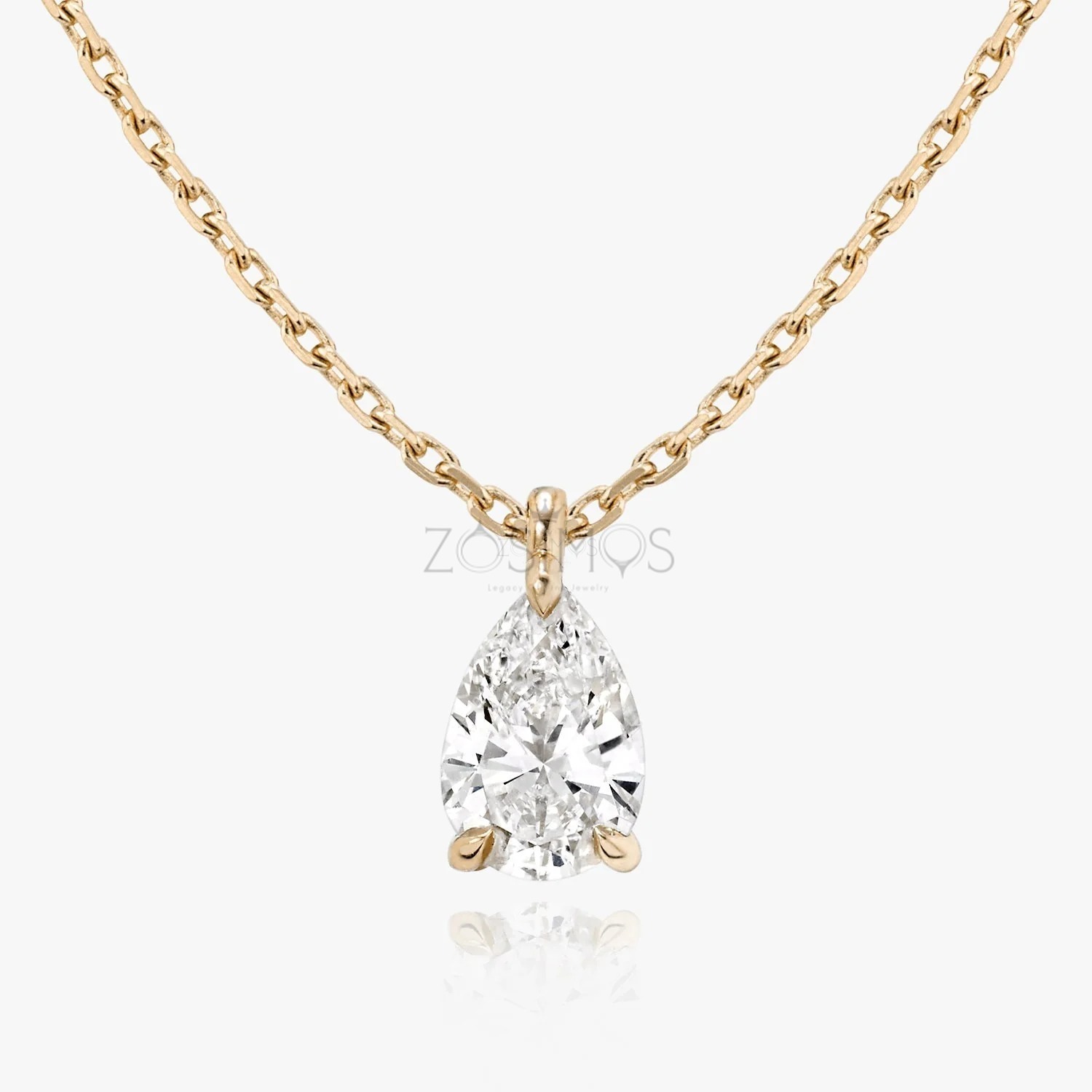 1.0 CT Vertical Pear Solitaire Diamond Necklace