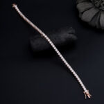 This elegant bracelet is crafted from 925 sterling silver and finished with a luxurious rose gold plating, giving it a warm, contemporary look. It features a classic tennis bracelet design, known for its continuous line of sparkling stones.