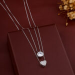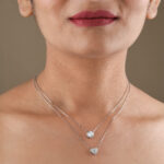 Both chains are fine, polished, and securely fastened, ensuring a comfortable fit. This necklace is a versatile and romantic piece, perfect for adding a touch of glamour to any outfit and suitable for both casual and special occasions.