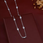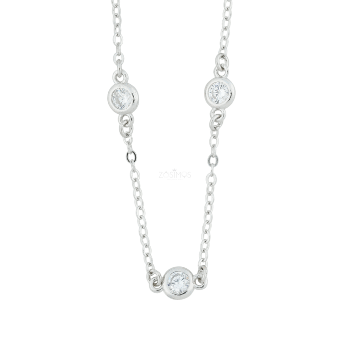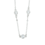 This elegant necklace is crafted from high-quality 925 sterling silver, featuring a delicate and modern “station” style design. The fine, polished chain is interspersed with three brilliant, round-cut cubic zirconia stones.