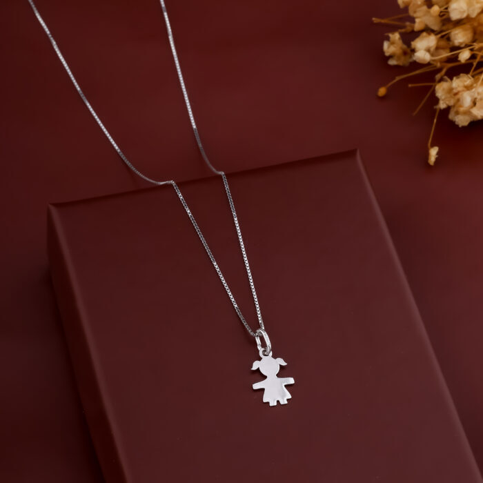 This charming necklace is crafted from 925 sterling silver, featuring a delicate chain with a little girl silhouette pendant. The playful yet meaningful design makes it a perfect gift for mothers, daughters, or grandmothers, symbolizing love, family, and cherished bonds. With its polished finish and minimalist style, this necklace is ideal for everyday wear or as a heartfelt keepsake.