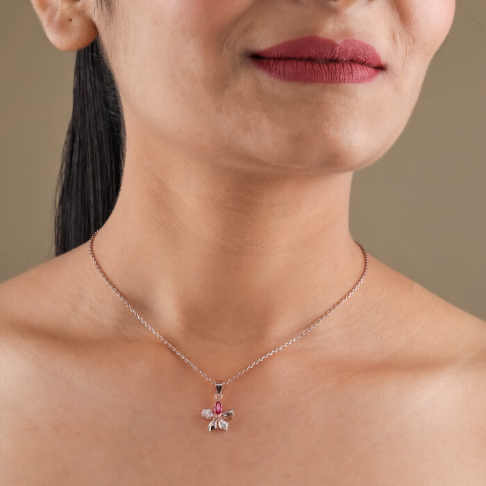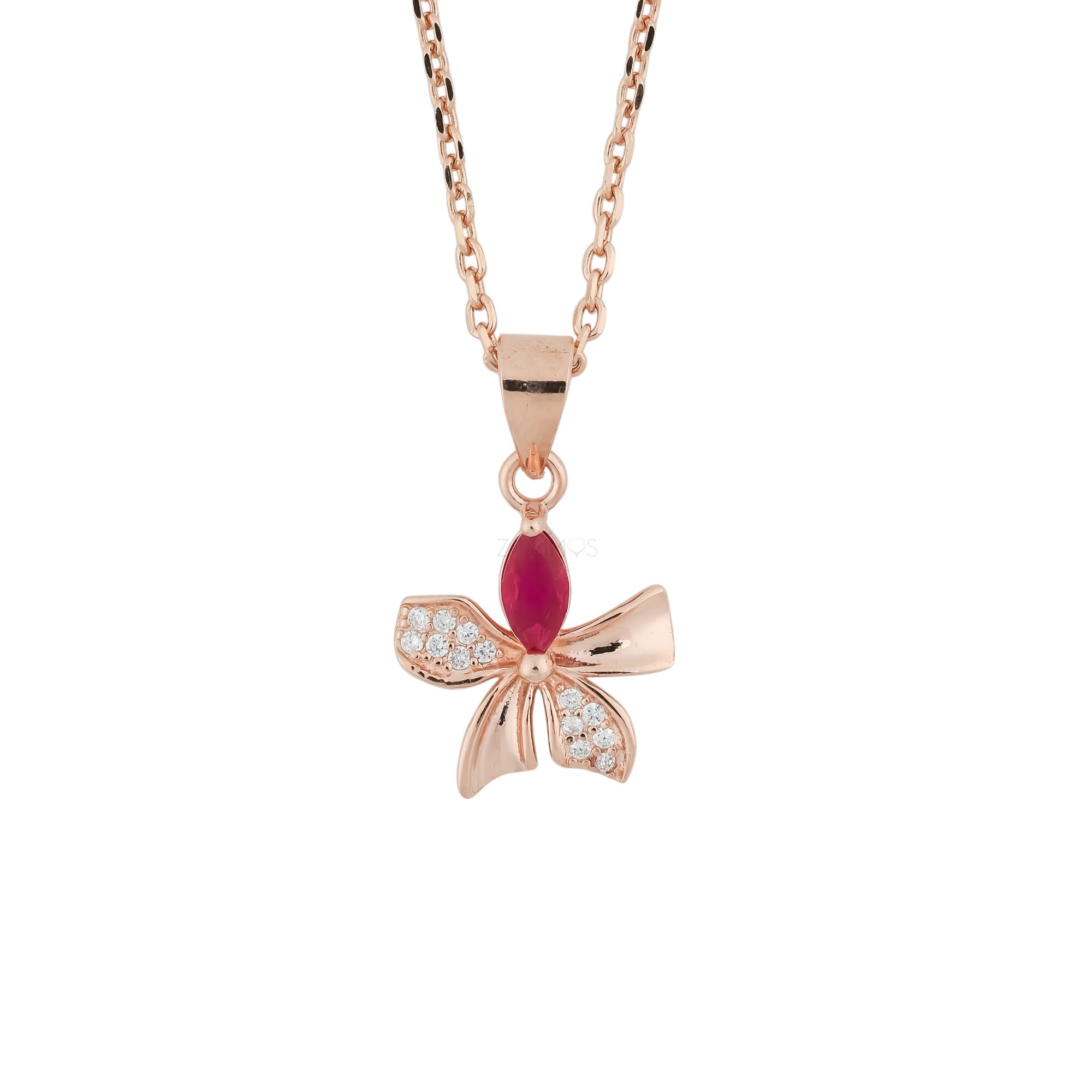925 Sterling Silver Rose Gold Plated Flower Necklace with Ruby-Red Center