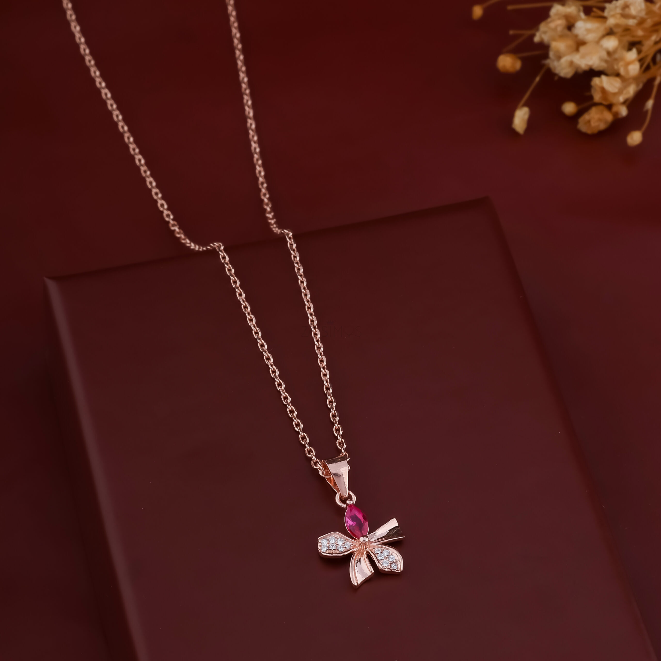 925 Sterling Silver Rose Gold-Plated Bow Pendant Necklace