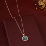 This unique necklace is crafted from 925 sterling silver and features a warm rose gold plating, giving it a luxurious and fashionable look. The centerpiece is a striking round pendant with a compass-inspired design.