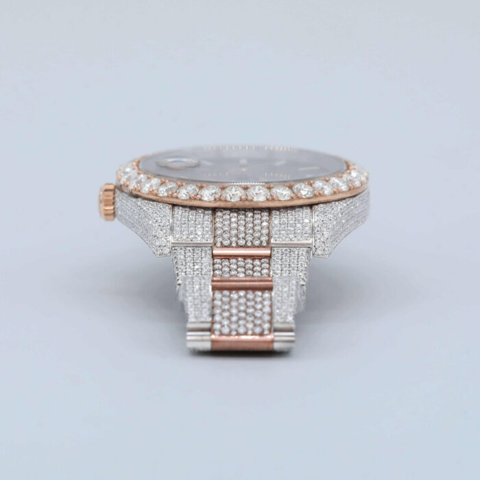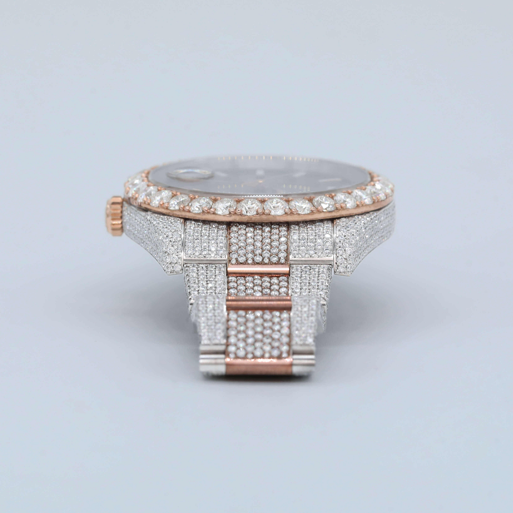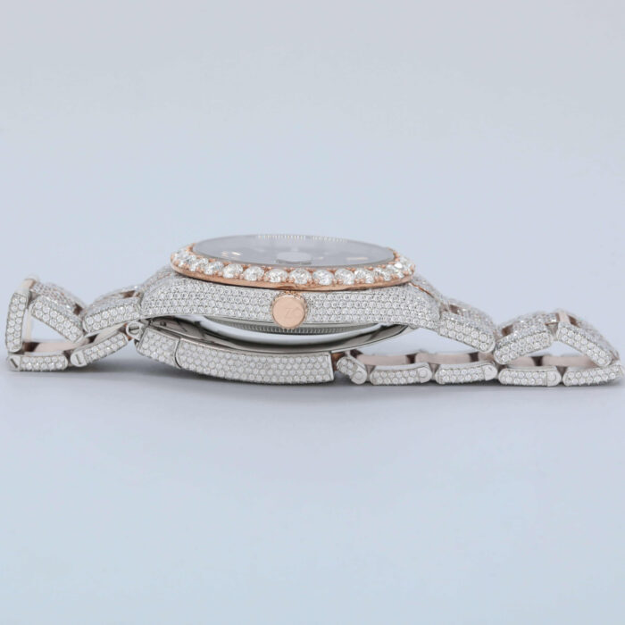 Elevate your style with the ultimate statement of sophistication and brilliance. This luxury timepiece is meticulously crafted and encrusted with premium moissanite gemstones, renowned for their dazzling fire and diamond-like sparkle. Each stone is hand-set to ensure maximum radiance, creating a watch that captures attention from every angle.