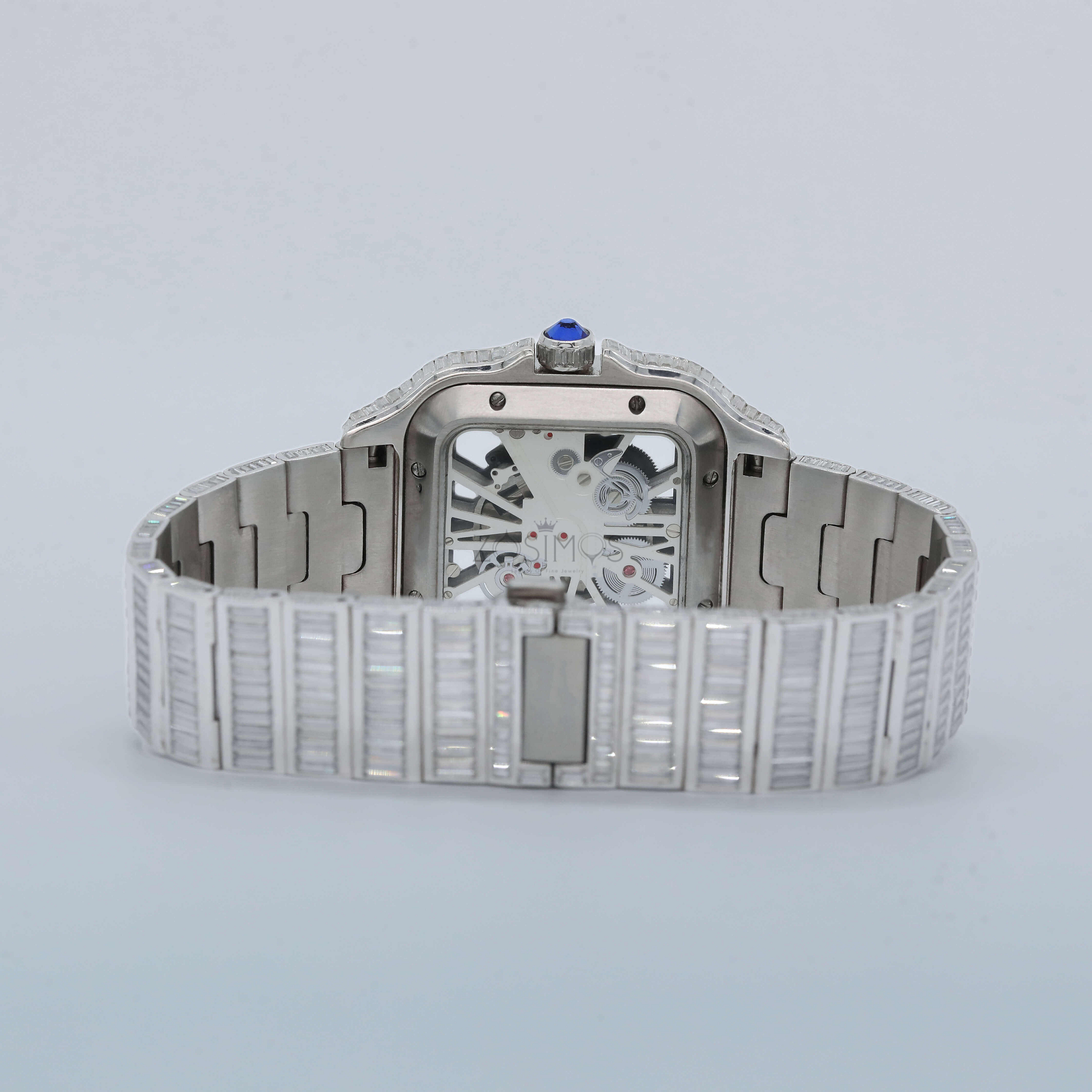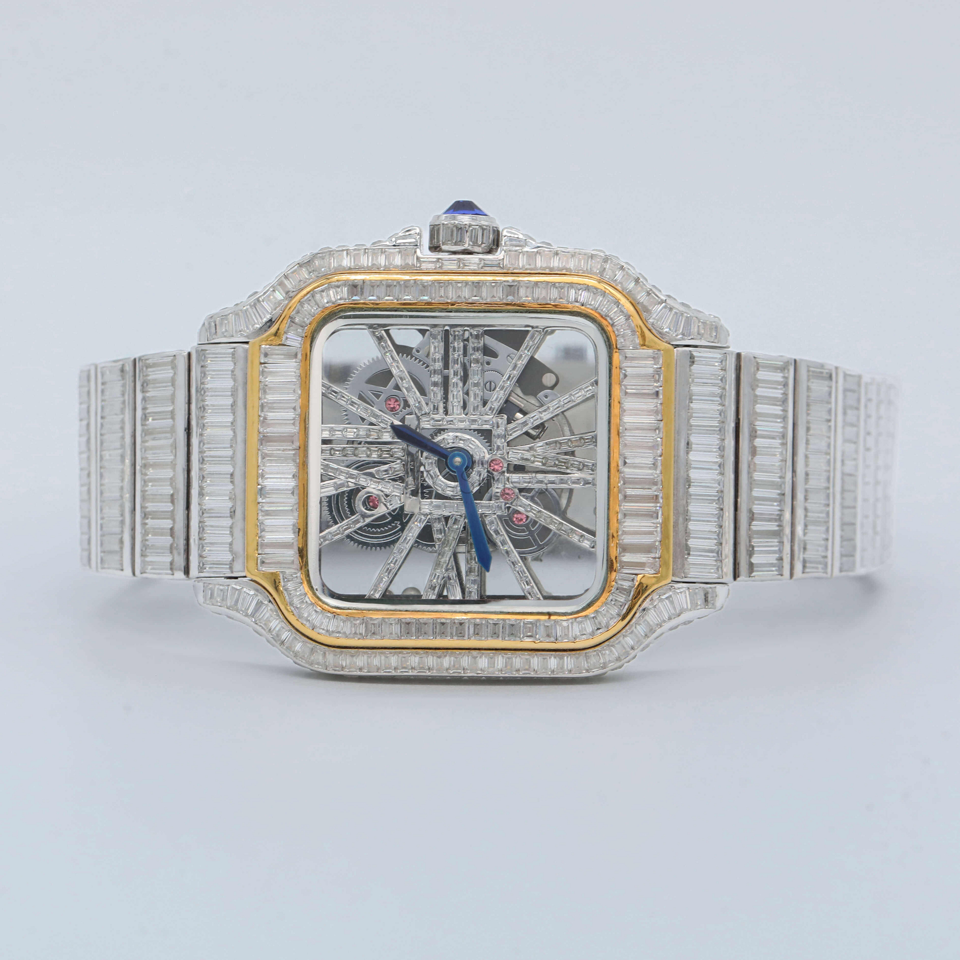Fully Iced-Out Design: Dazzling stones encrusted on the bezel, dial, and band for a show-stopping shine from every angle.