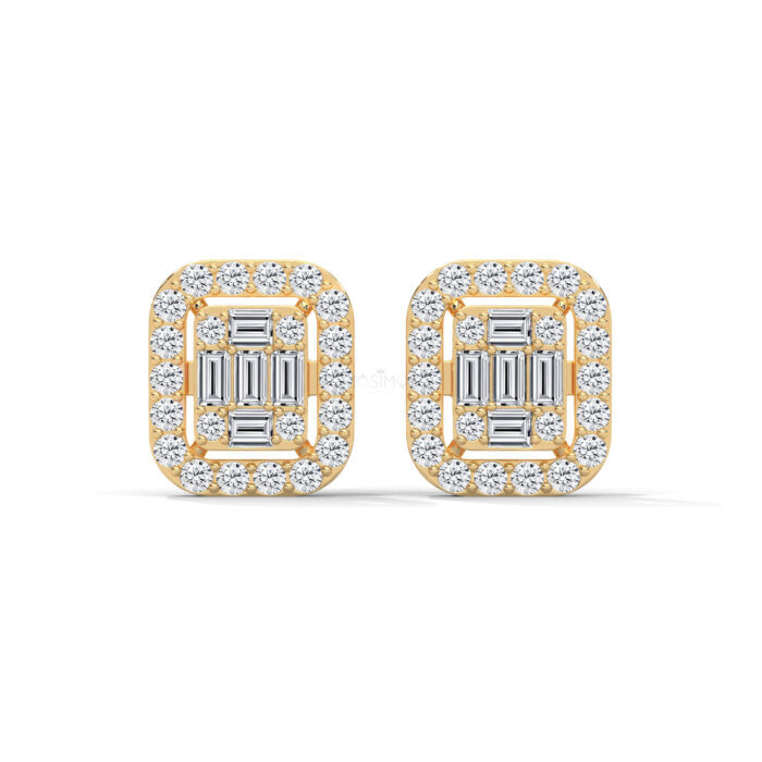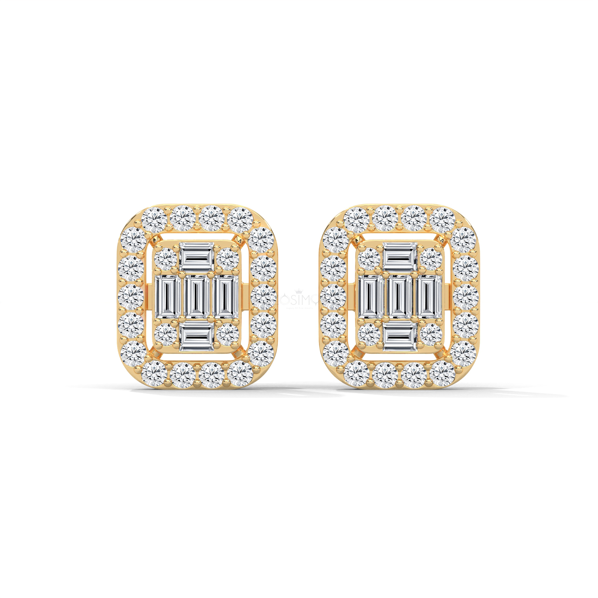 Home Gold With Lab Diamonds Earrings Charming buguette Cut solitaire Studs.