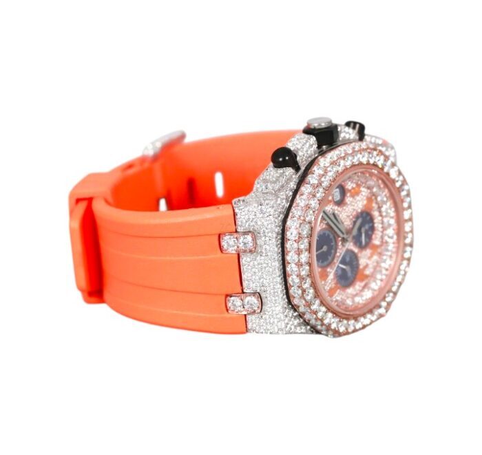Be the first to review “Custom Luxury Watch with Orange Rubber Band 18K Rose Gold Case Moissanite Diamond” Cancel reply
