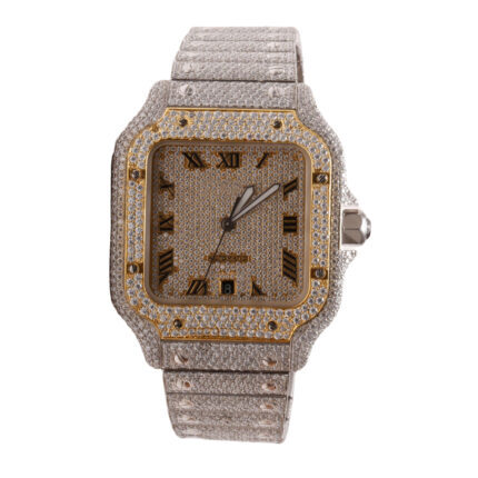 Elevate your style with the ultimate statement of sophistication and brilliance. This luxury timepiece is meticulously crafted and encrusted with premium moissanite gemstones, renowned for their dazzling fire and diamond-like sparkle. Each stone is hand-set to ensure maximum radiance, creating a watch that captures attention from every angle.