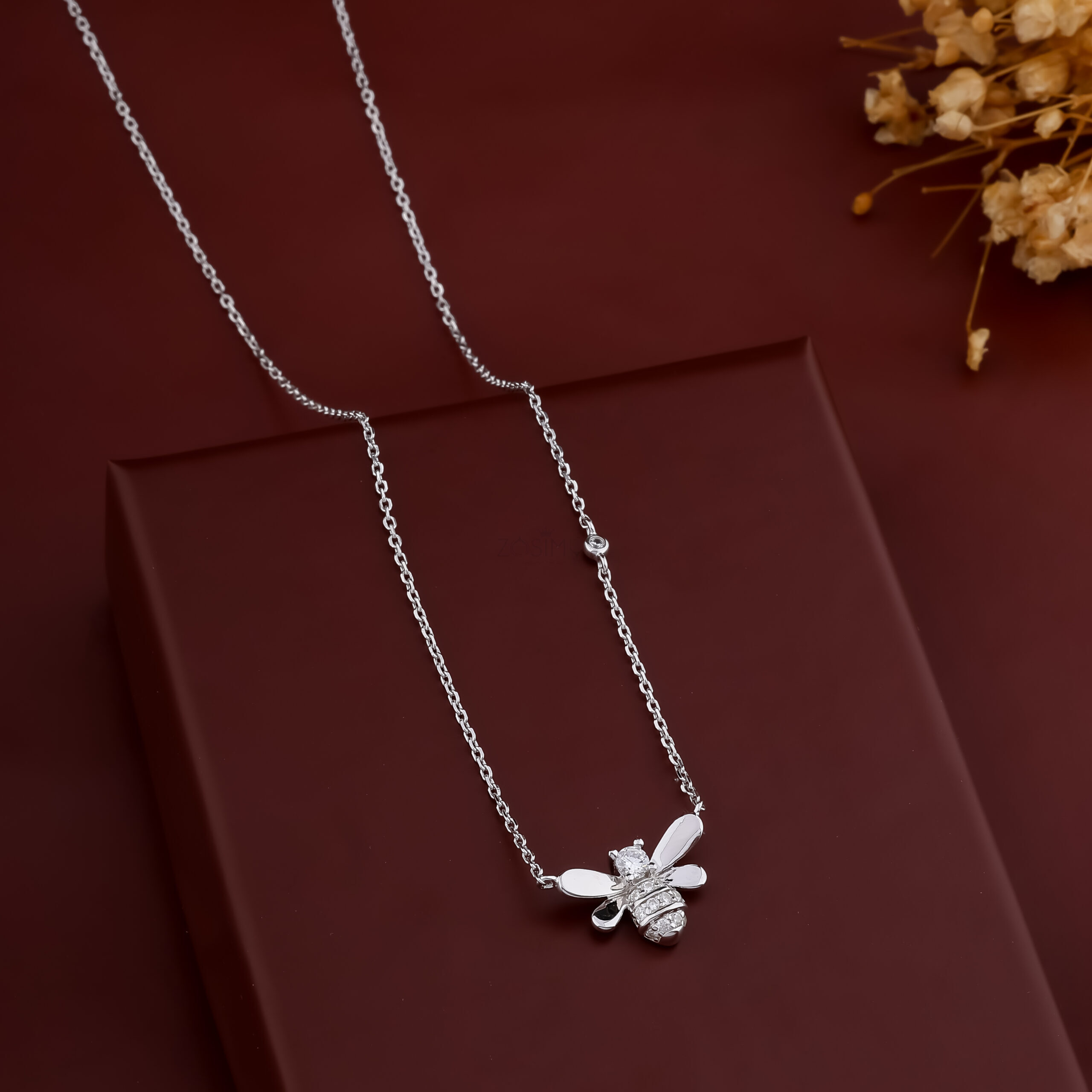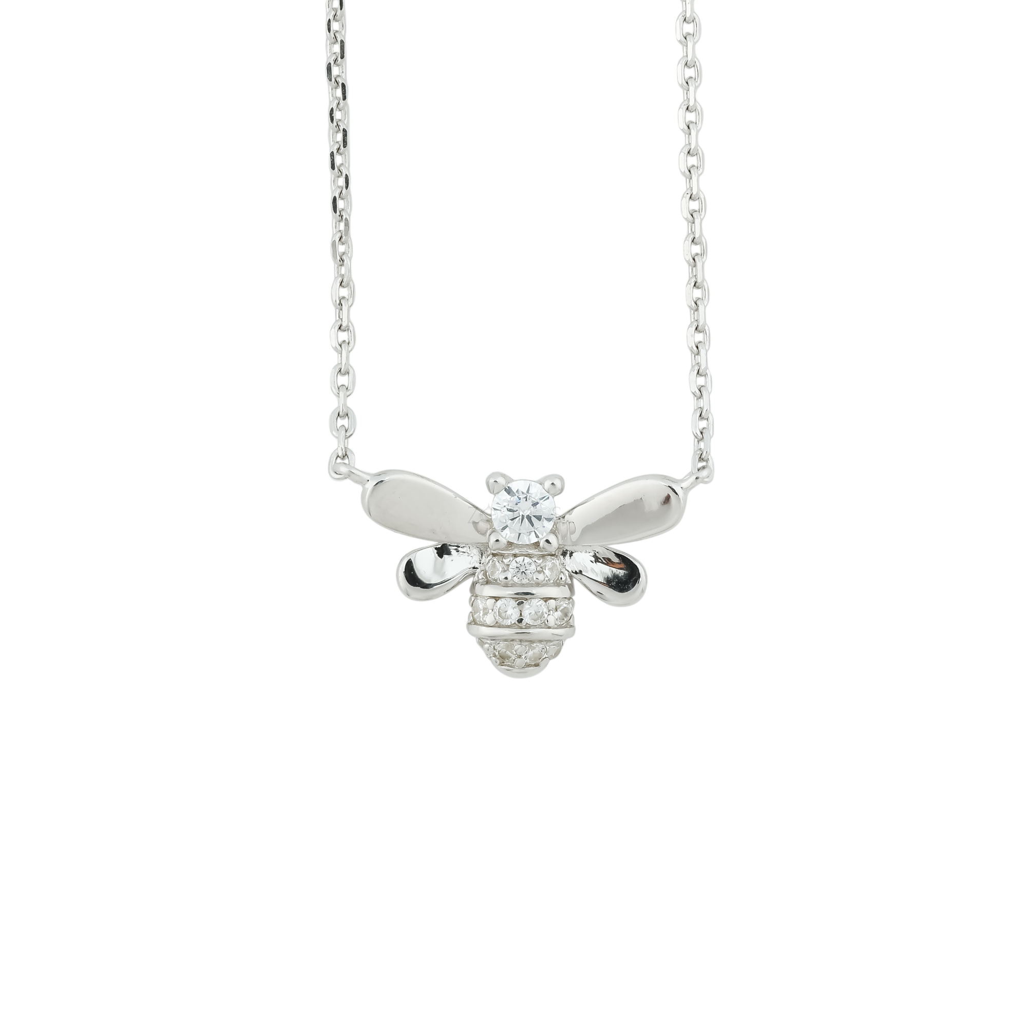 Celebrate nature and elegance with this charming bee pendant necklace, crafted from high-quality 925 sterling silver. Designed with meticulous attention to detail, the bee features brilliant cubic zirconia stones set in the body and head, adding a radiant sparkle to this whimsical piece.