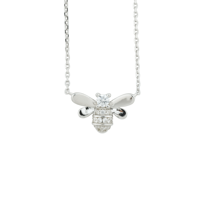 Dainty 925 Sterling Silver Bee Necklace with Sparkling Cubic Zirconia Accents