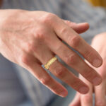 If you are planning a surprise proposal, then measuring the ring without your partner knowing is both fun and challenging. If they already own any rings, then all you need to do is quickly borrow a ring while they’re distracted and using a pencil and paper, trace one circle on the inside (diameter) of the ring and another circle on the outside (circumference) of the ring. Do it a few times if time allows (and try with other rings) to double check that your measurements are correct.