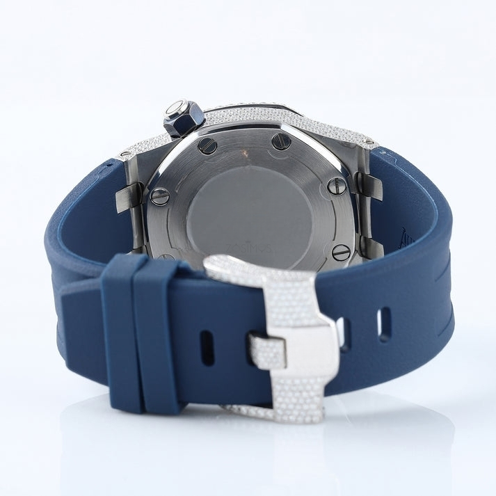 Dazzling Look Blue Toned Dial Fully Iced Out Moissanite Diamond Watches for Mens