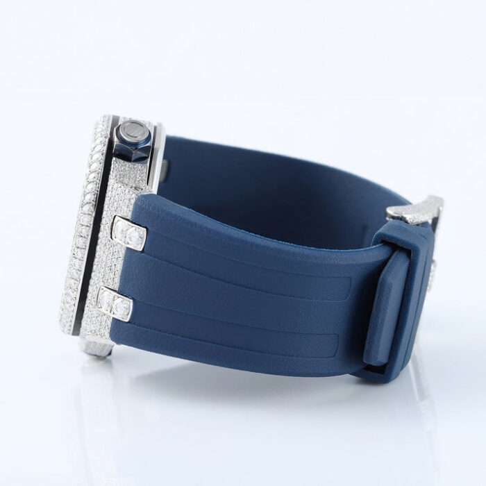 Elevate your style with the ultimate statement of sophistication and brilliance. This luxury timepiece is meticulously crafted and encrusted with premium moissanite gemstones, renowned for their dazzling fire and diamond-like sparkle. Each stone is hand-set to ensure maximum radiance, creating a watch that captures attention from every angle.