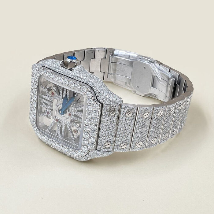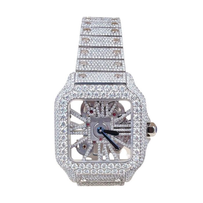 Elevate your style with the ultimate statement of sophistication and brilliance. This luxury timepiece is meticulously crafted and encrusted with premium moissanite gemstones, renowned for their dazzling fire and diamond-like sparkle. Each stone is hand-set to ensure maximum radiance, creating a watch that captures attention from every angle.