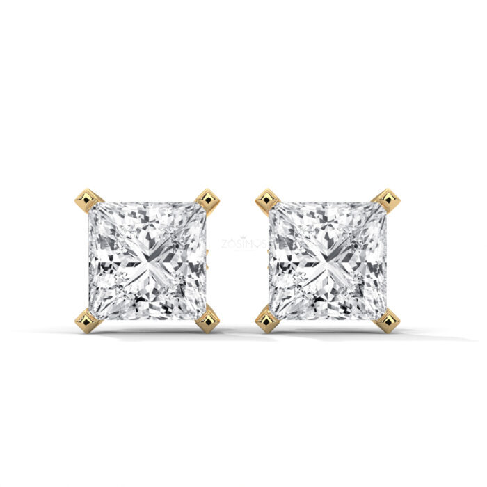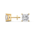 Home Gold With Lab Diamonds Earrings Royal Princess Cut solitaire Studs.