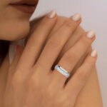 The diamond is usually the main attraction, and it’s often cut in shapes like round, princess, cushion, or emerald, with the cut affecting the diamond’s brilliance and sparkle. This type of ring is popular for engagements but can also be worn as a statement piece for various occasions.