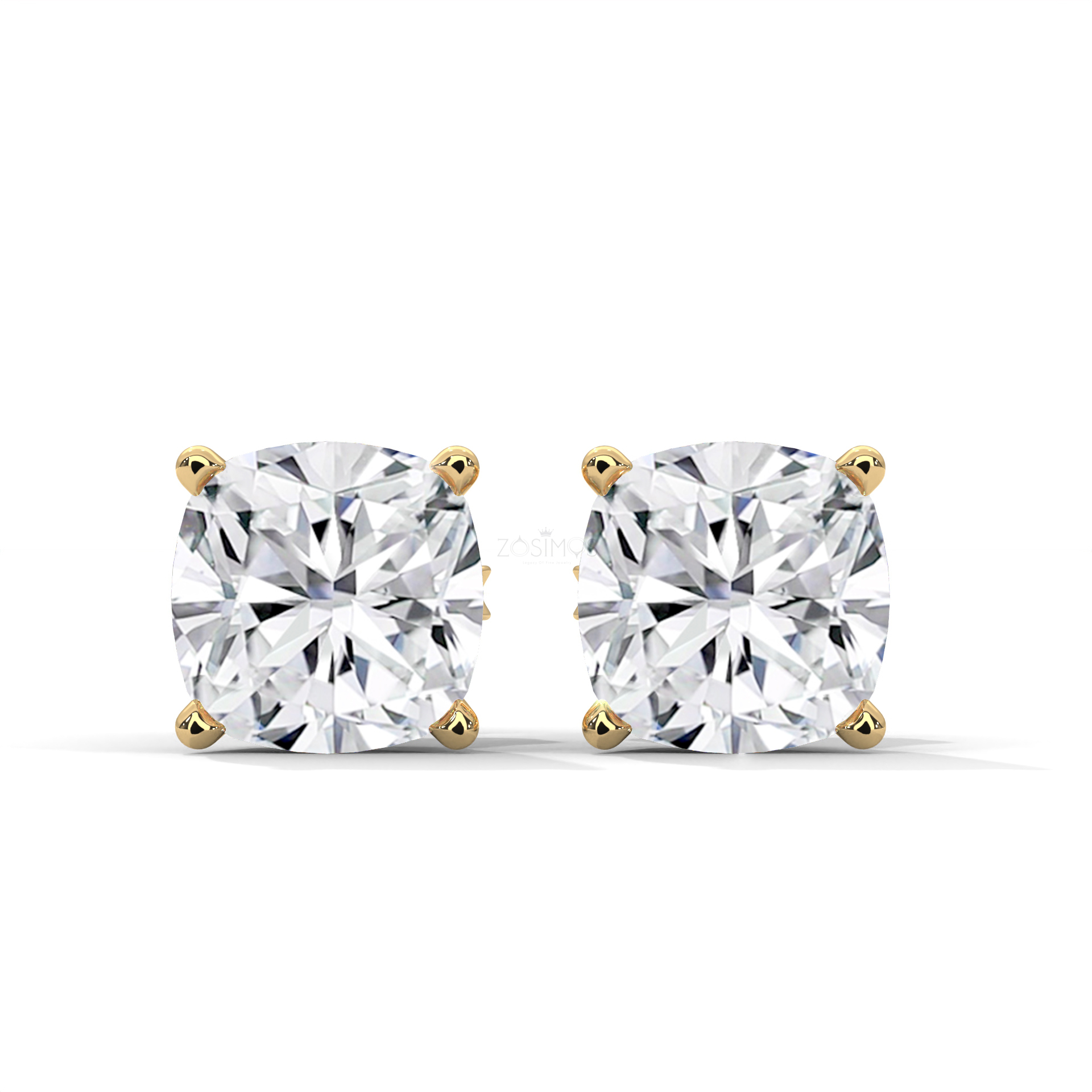 Glossy Cushion Cut solitaire Studs.
